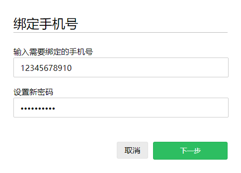 接着,来到绑定页面后,我们可以看到【手机号】那一栏右边有【添加手机号】按钮,点击后弹出手机号绑定框。