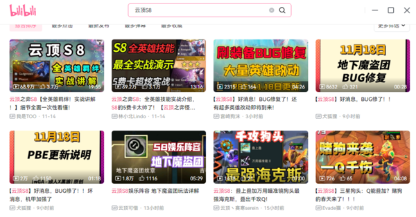 财神爷站小编在哔哩哔哩中浏览一番,发现其中是有云顶之弈S8资讯的;虽然其中有一部分是由自媒体作者搬运的官方资讯,但更多的是一些云顶之弈“技术流”自媒体作者,在亲自游玩云顶之弈美测服后,自己整理出来的云顶之弈S8资讯,这里不仅包含可观数据,也包含这些技术流玩家自己对云顶之弈S8目前的想法,这有助于我们提前形成云顶S8的思路。