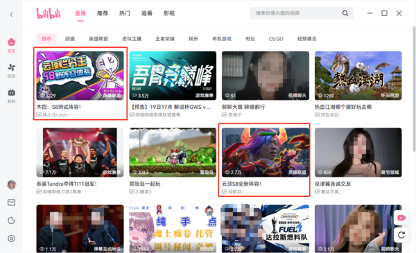 哔哩哔哩中是有云顶之弈S8直播的,我们打开哔哩哔哩,点击上方【直播】按钮,切换到直播界面,然后我们就很可能在推荐里看到云顶之弈S8直播的相关内容;倘若没有,我们还可以在右上方搜索栏中输入与“云顶之弈”相关的关键词,也可以找到云顶S8直播。