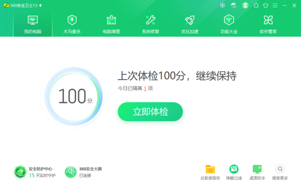 360旗下评分超高超好用的软件三是360安全卫士,评分:★★★★★,它是一款集病毒查杀、垃圾清理、漏洞修复、优化加速以及电脑清理等功能于一身的电脑安全防护软件,是非常受欢迎的上网必备的安全软件。