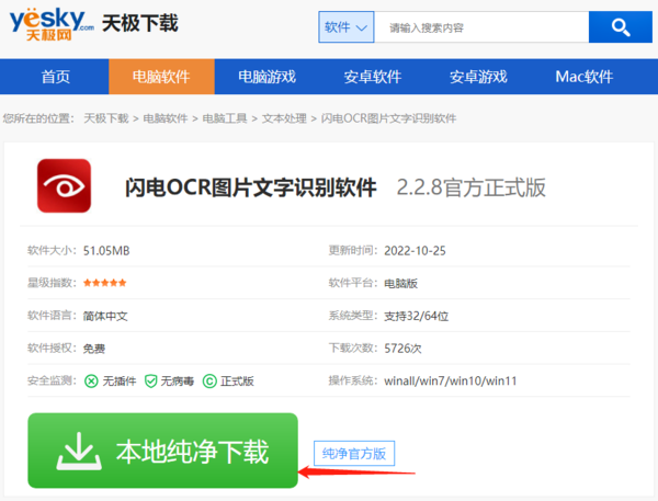 2、本站下载。为了能让大家更加轻松快速的下载闪电OCR识别,本站(财神爷站)也给大家提供闪电OCR的下载渠道,只需我们点击链接,进入后,我们点击【本地纯净下载】就可以快速下载闪电OCR识别。