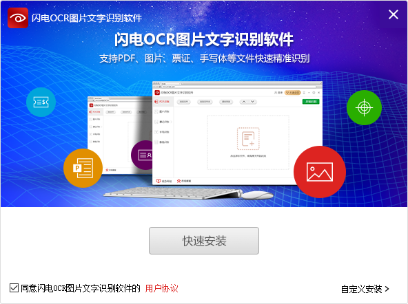 第三步,安装完成后,我们点击中间【完成】,关闭安装窗口后,即可开始使用闪电OCR识别。