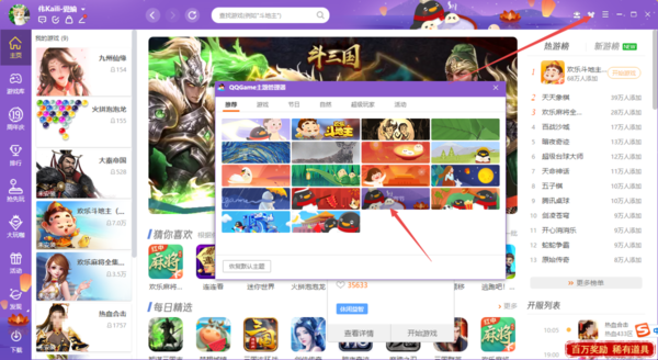 而QQ游戏大厅想要修改皮肤的话,也是先登录到自己的账号,点击顶部右上角的【衣服】图标,然后在弹出的主题管理器中,选择想要更换的皮肤点击进行更换就行了。