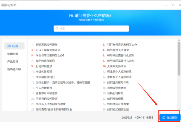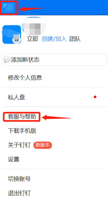1、打开钉钉电脑版,点击左上方【名字】——【客服与帮助】。