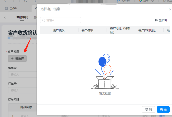 3.流程中的外部客户显示的就是所选客户,填写信息后点击【提交】;