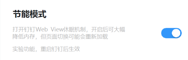 电脑配置不同,钉钉在其环境所运行的流畅度也不同,针对此种情况,钉钉在【设置】菜单栏中设置有【节能模式】功能,打开后即可让钉钉大幅降低对电脑内存的占用。
