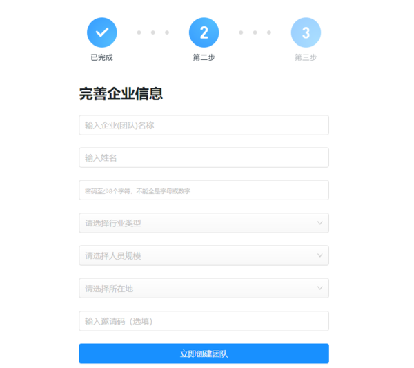 2.?点击后,我们会跳转至【钉钉】官网下面的创建团队页面,我们输入手机号验证后,根据提示进行操作即可。