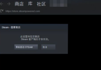 4.?地区选择完成后点击确认,会弹出“steam需要重新启动”的提示,此时重启即可。