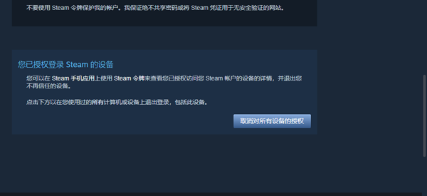 3.?下拉页面,找到【取消对其他所有设备的授权】,重新打开steam,登录账号即可解决地区不支持的问题了。