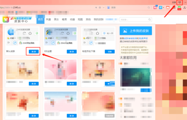 1、在2345加速浏览器皮肤中心的右下方有【大家都在用】版块,在这里可以看到一些关注度和使用量比较高的皮肤;