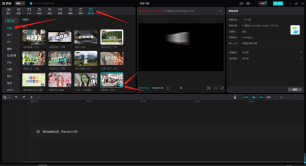 剪映上有需要各式各样现成的素材,高质量且通用,我们可以找到合适的直接套用,素材分类位于左上角【素材包】,点击即可查看,左侧有分类,查找很方便。