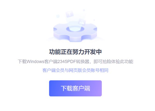 4、按照页面提示,由于目前没有上线网页在线文字提取功能,因此我们点击下载【2345PDF转换器】。