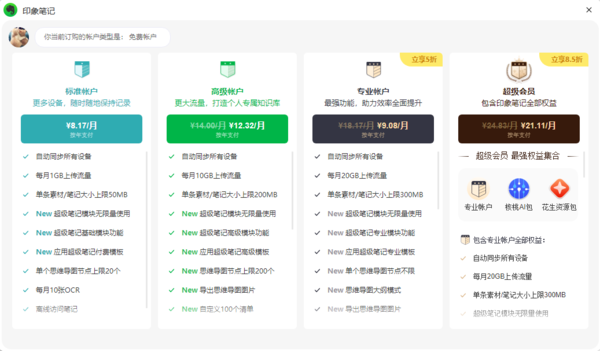 印象笔记高级账户与标准账户的差异有哪些