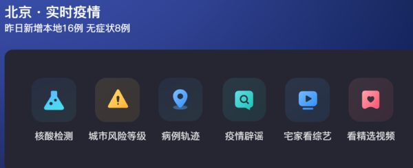 2、在界面最上一排,我们可以看到“核酸检测”、“城市风险等级”、“病例轨迹”、“疫情辟谣”等与疫情一线有关的信息,帮助大家掌握第一手最新防疫信息。