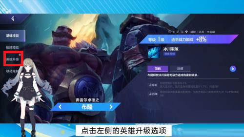 第三步:点击左侧的英雄升级选项(如图所示)。