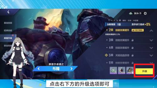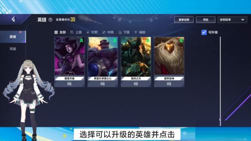 第二步:选择可以升级的英雄并点击(如图所示)。