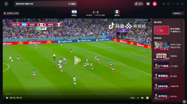 相信大家在看完上段“文字版”梅西亮眼表现,或许会表示并不过瘾,那我们还可以在这款软件中看“高清流畅视频版”墨西哥vs阿根廷比赛,那就是抖音电脑版。在这里,不仅有墨西哥vs阿根廷比赛的全程回看,还有梅西等球员的精彩瞬间、集锦等,包你看过瘾!