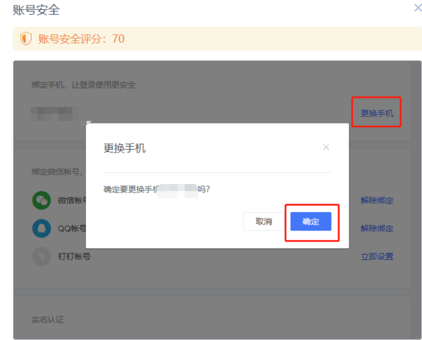 第五步,选择“确定”更换当前手机号,并输入手机短信验证码;