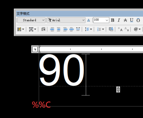 第四步:在编辑状态中,键盘输入%%C命令,鼠标指针位置放于数字后侧,度数显示于数字右上方。