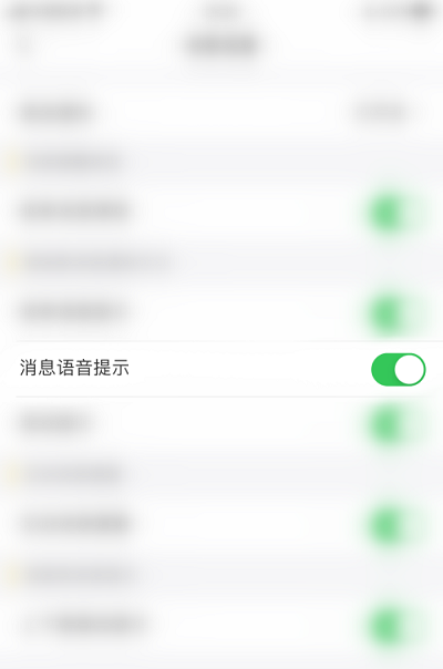 第三步:最后在消息设置界面点击“消息语音提示”后面的圆点,圆点变为绿色即表示蝌蚪语音启用消息语音提示成功。