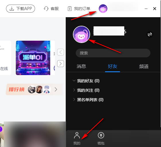 2、进入蝌蚪语音软件页面之后我们点击打开页面右上角的头像,然后在右侧出现的个人列表中,我们再点击一次头像,或是点击左下角“我的”选项,进入基本资料页面(如图所示)。
