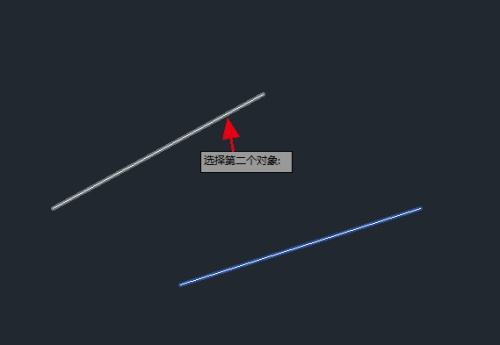 第六步:接着提示“选择第二个对象”,这里选择另外一条直线。