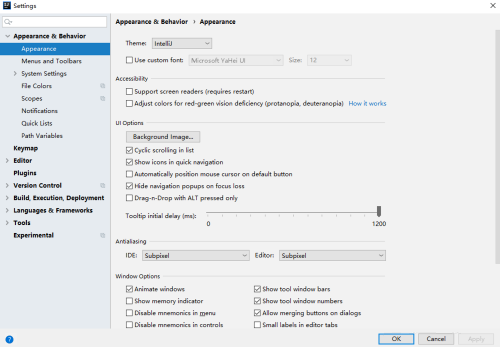 第四步:打开Settings设置界面窗口,在该窗口下可以配置IntelliJ IDEA 2019的相关配置。