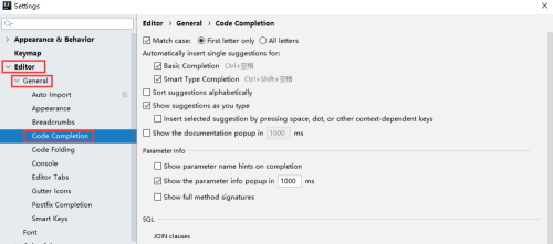 第五步:在左侧菜单选择Editor -> General -> Code Completion。