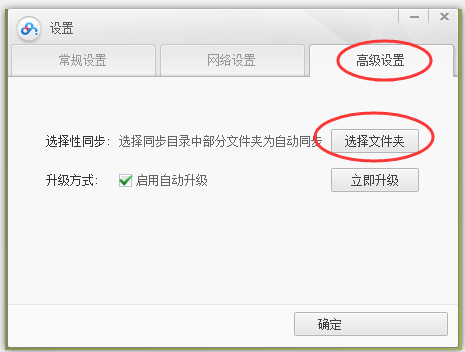 第三步:在“设置”的对话框里,选择“高级设置”,点击选择“选择性同步”;