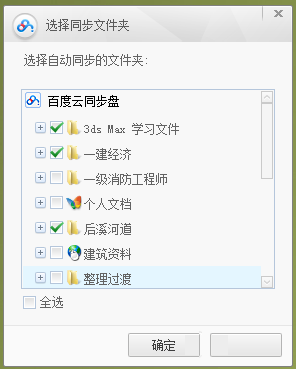 第四步:这样,我们可以如图选择一些我们需要的文件夹来同步,也可以点击+号来选择次级文件夹来选择,然后点击确定。