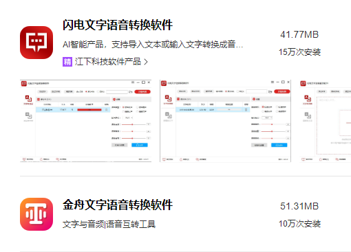 闪电文字语音转换软件和金舟文字语音转换软件不是同一软件,它们只是刚好都属于“江下科技”,且都属于文字语音转换软件,因此容易被大家混淆,实际上两者并非是同一软件。