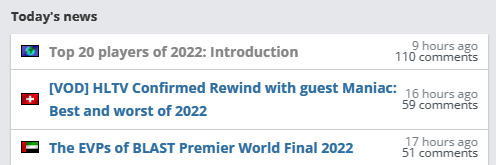 2、HLTV官网。如果屏幕前的你有一定英语基础,那可以去HLTV官网,在第一时间跟进2022CSGOtop20公布过程,不过大家也要小心,不要在HLTV官网上乱点广告。