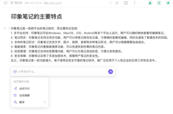 转瞬即逝,在2023年之际,印象笔记陆续推出了以AI为驱动的智能化产品:“知识星图、智能标签、智能摘要、智能推荐”,不断在AIGC人工智能生成领域深耕实践着。