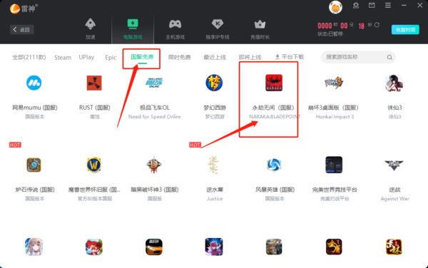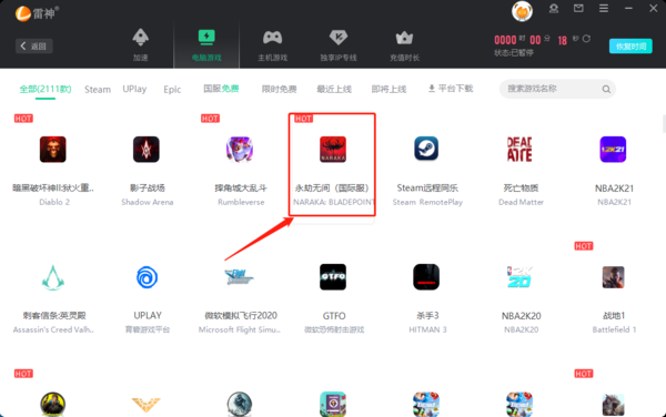 雷神加速器中可以加速永劫无间国际服,且支持永劫无间国服免费加速。