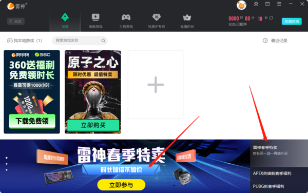 答案是:【真的】,小编特意打开雷神加速器,查看一番之后发现的确有这个活动,我们登陆雷神加速器在首页就可以看到了。