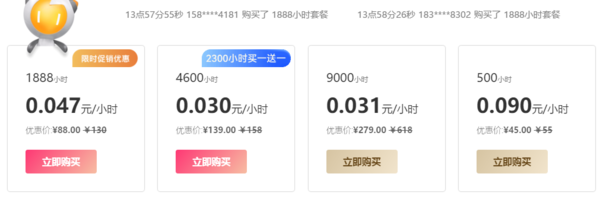 对比9000加速时长包,如图可以看到,此次活动平均下来的小时时长单价竟然比9000加速时长包的单价还要便宜。可以看得出来此次活动的优惠力度是前所未有的。