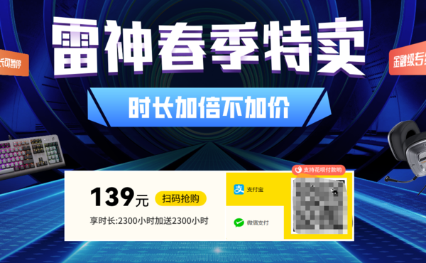 可以看到,此次活动打着“雷神春季特卖”的旗号,优惠力度力度再次“刷新记录”,直接买一赠一,可以说是攒时长玩家的福音。