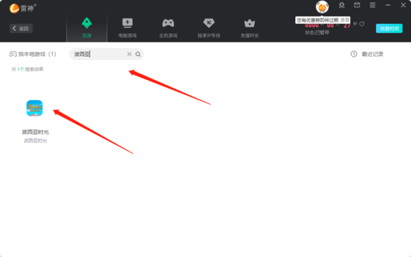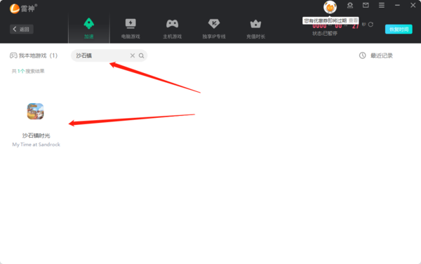 我们在雷神加速器主界面中直接搜索【沙石镇时光】即可查询到了,同样我们也可以查询并加速其前作【波西亚时光】。