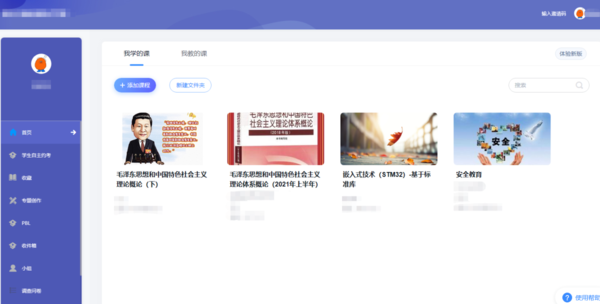 最主要的就是功能不同,可以明显看出网页版是极简化的学习通,主要包含了左侧【首页课程管理】、【自主约考】、【收藏夹】、【云盘】等功能。