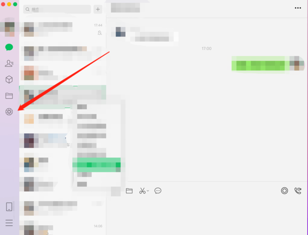 1.?在微信主界面中点击左侧菜单栏的【朋友圈】标志。