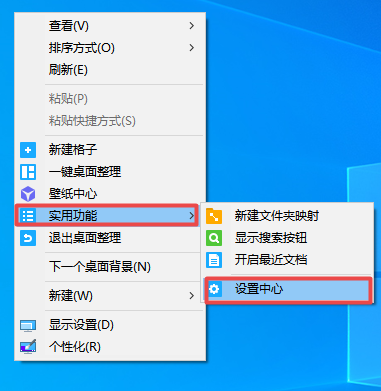 第一步,在电脑屏幕的空白处按下鼠标右键,然后在弹出的选项中,选择腾讯桌面整理功能中的【实用功能】,然后再点击选择【设置中心】。