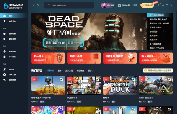 那就是【Steambig】。Steambig是一款国内研发的游戏平台,其中包含海量游戏,纵古至今,样样俱全。而且在Steambig中,我们经常可以看到“游戏租赁优惠”活动,只要抓住机会,我们就能以超低价格购买多款游戏。另外,Steambig中还会提供一些永久购买游戏服务,如果我们在租赁、试玩的过程中,觉得某款游戏非常好玩,想长期持有,那将有机会直接转为永久购买。