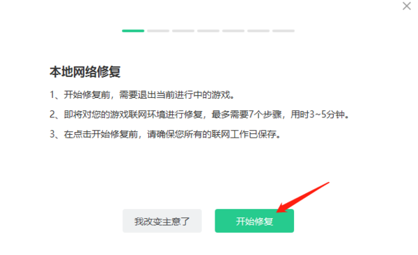 进入修复工具后,我们要先保证自己的吃鸡处于关闭状态,然后点击【开始修复】;