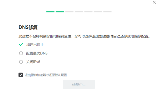 修复过程中,我们不要中途关闭修复或关闭雷神加速器,耐心等待修复完成即可;