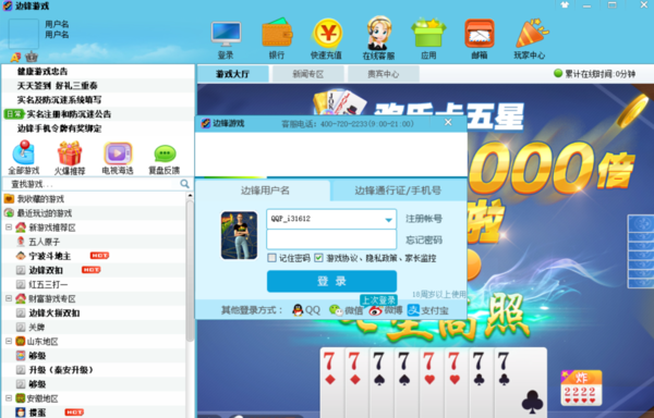 边锋游戏大厅也是一款运营多年的游戏大厅,其上主打地方特色棋牌游戏,让全国各省市的相亲朋友们都能找到家的温暖,即使漂泊在外也可在平台上结识到老乡棋友牌友。同时其上也具有非常浓郁的棋牌竞技氛围,亦敌亦友的对局让大家能尽情展示自己的棋牌智慧。