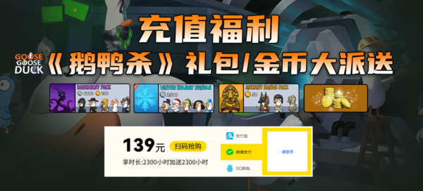 而且,每在页面充值1次,赠送1次鹅鸭杀游戏道具抽奖机会,奖品中包括鹅鸭杀饰品扩展包、鹅鸭杀金币等奖励;喜欢鹅鸭杀,且最近需要雷神加速器时长的朋友,可以冲起来了!