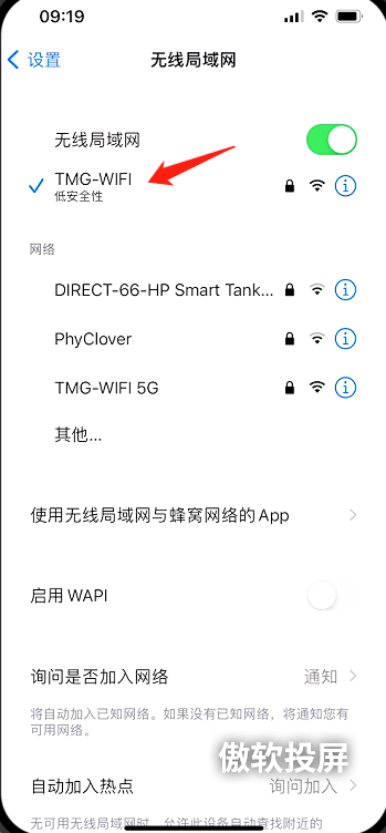 ①首先,我们在电脑上打开傲软投屏,之后查看电脑、手机连接的网络,我们需要保证手机、电脑连接至同一网络。