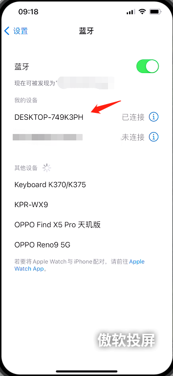 ④,但是这不算完,在可以成功反控之前,我们需要让iOS手机和电脑的蓝牙进行连接,在连接匹配成功后,我们即可用傲软投屏反控iOS黎明觉醒,从而实现PC上玩iOS端黎明觉醒。