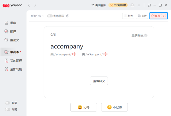 在了解完网易有道词典单词本之后,我们再来看看网易有道词典单词本界面,看看它有哪些显示模式。