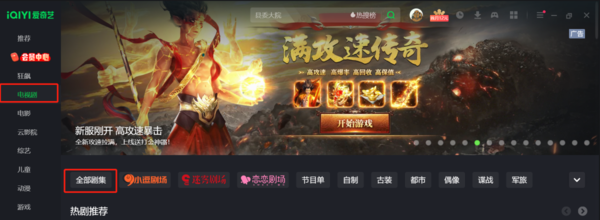 1、打开爱奇艺电脑版,在左侧菜单栏中点击【电视剧】然后点击右侧的【全部剧集】即可进入。